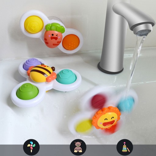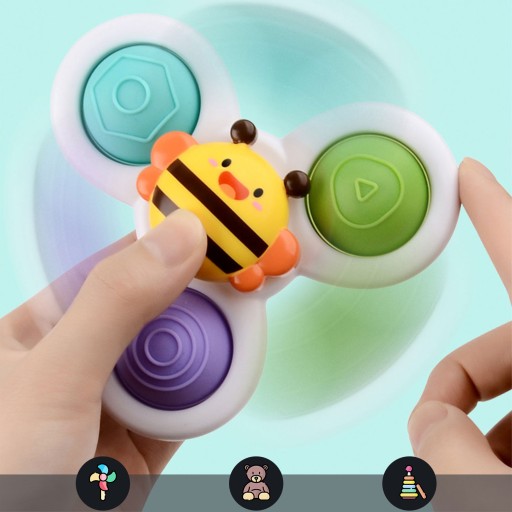 Spinery można przyczepić zarówno do szybu w czasie podróży oraz do wanny w czasie kąpieli (zabawkę można moczyć). Łożyska spinerów gwarantują długotrwały obrót. Zabawki posiadają gumowe elementy do przyciskania co rozwinie zmysły dziecka oraz działa relaksująco. Zabawa ćwiczy zwinność roczek u dziecka oraz poprawia koordynację ręka-oko.