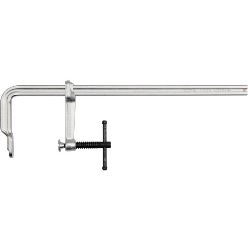 Ścisk stolarski typu F. Gruba, stabilna szyna usztywniona dodatkowymi przetłoczeniami. Ramiona o wzmocnionym profilu, śruba z gwintem o specjalnym nakroju. Talerz dociskowy osadzony na przegubie kulowym, łatwo dopasowuje się do powierzchni a miękkie osłony z tworzywa chronią ściskany materiał. Rękojeść osłonięta miękkim technicznym tworzywem pozwala na silne zaciśnięcie materiału. Stabilny,mocny ścisk do prac stolarskich i montażowych.