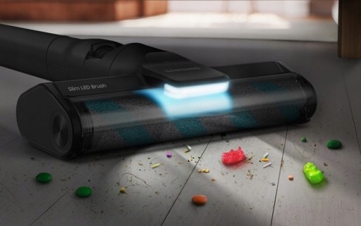 Zbieraj drobny kurz z twardych podłóg za pomocą wąskiej szczotki ze światłem LED, która obraca się z prędkością ok. 1500 obr./min. Oświetlenie LED uwidacznia kurz w zaciemnionych miejscach np. pod łóżkiem. Jest smuklejsza i lżejsza. Obrotowa o 180° głowica zapewnia łatwe manewrowanie i zmianę kierunku odkurzania. Dokładne zbieranie nawet drobnego kurzu zapewnia wałek wykonany z sntystatycznego włosia, co więcej zapobiega plątaniu się włosów. Wałek można łatwo wyjąć do czyszczenia, naciskając jeden przycisk.