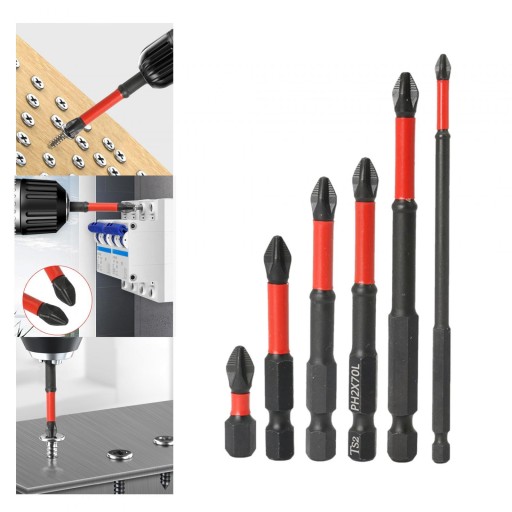 Набор из 6 ударных бит Phillips для отверток Phillips для автомобильных дрелей