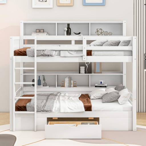 Детская двухъярусная кровать с ящиками и отделениями для хранения вещей 90х200см Белый