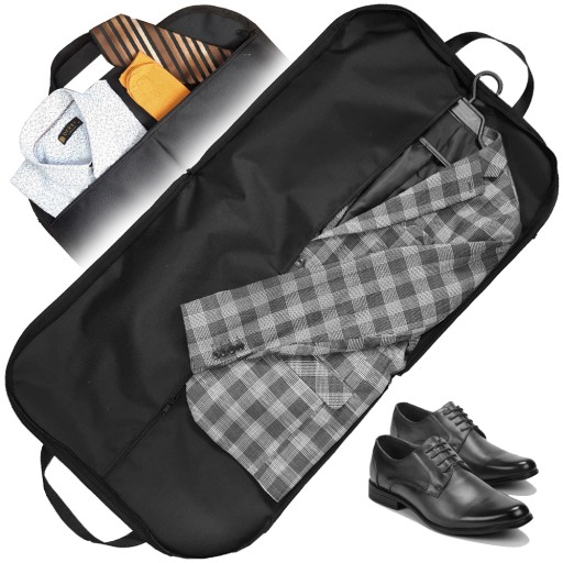 - Zasuwany taśmą, podzielony na pół pokrowiec umożliwia schowanie do środka nie tylko obuwia, ale także dokumentów, książek czy innych niezbędnych rzeczy, nie naruszając eleganckiego wyglądu garnituru.