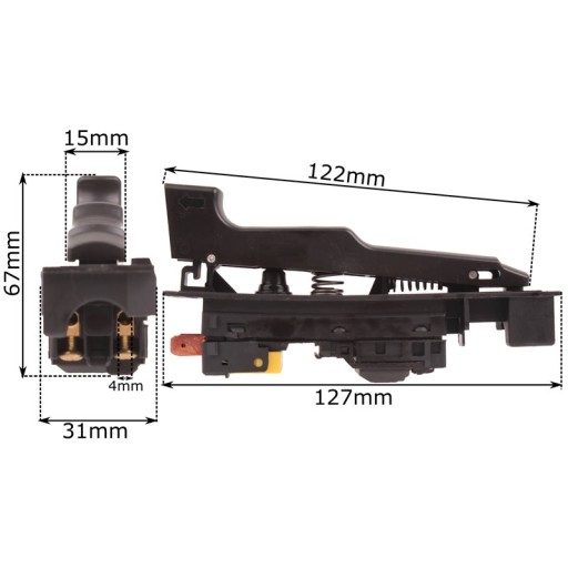 Wyłącznik cztero pinowy z kondensatorem do szlifierek na 180 mm oraz 230 mm.
