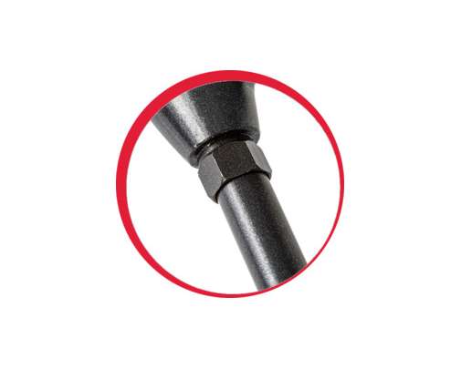 - Pierścień i kulka wewnątrz głowicy ze stopu aluminium pokrytego PTFE pełnią funkcję zaworu zwrotnego