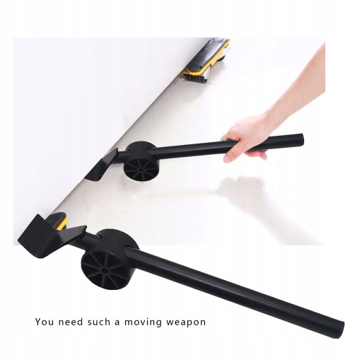 Jak używać: Ta kombinacja podnośnika do mebli i narzędzia do przenoszenia zawiera urządzenie podnoszące i 4 krążki. Najpierw włóż sprzęt do podnoszenia w spód mebla. Wykorzystuje zasadę dźwigni. Z łatwością uniesiesz jedną stronę mebla przy niewielkim wysiłku; następnie umieść koło pasowe pod stopą mebla. Gdy wszystkie 4 stopy mebla mają krążki, możesz je łatwo przesunąć w nowe pozycje. Nawet jedna osoba z łatwością sobie z tym poradzi.