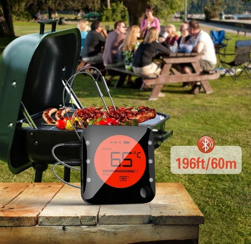 2 sondy ze stali nierdzewnej w zestawie Może monitorować do 6 różnych produktów spożywczych jednocześnie, ma 6 długich cyfrowych sond ze stali nierdzewnej, każda sonda jest produkowana zgodnie z surowymi normami zatwierdzonymi przez amerykańską Agencję ds. Żywności i Leków, a każda sonda ma wysoką temperaturę (350°C) aluminium uchwyt ze stopu. Może uzyskać natychmiastowe odczyty różnych rodzajów żywności w tym samym czasie