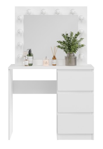 Po prawej stronie toaletki znajdują się 3 pojemne szuflady na kosmetyki i nie tylko.