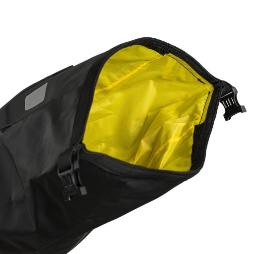 - Mocna klamra z tworzywa sztucznego, która zapewnia solidne zamknięcie i pozwala na zwiększenie ładowności torby.