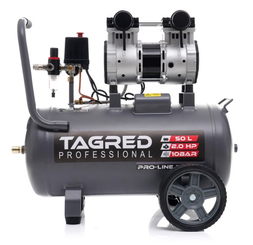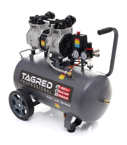 W sprężarce bezolejowej marki TAGRED zastosowany został funkcjonalny i praktycznie bezobsługowy zespół tłokowo-membranowy. Zastosowane rozwiązanie sprawia, że praca kompresora powietrza jest bardzo cicha oraz wydajna, można jej używać zarówno w pomieszczeniach gospodarczych i domowych.