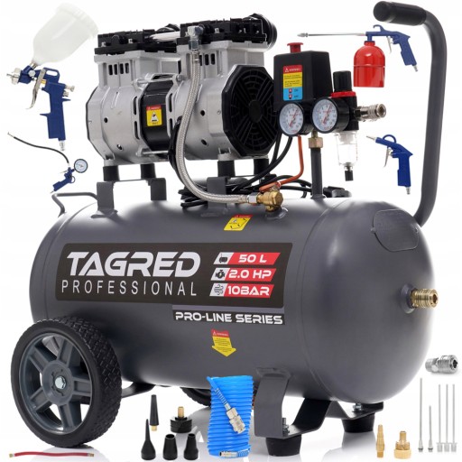 NOWOŚĆ 2024 r. - Kompresor bezolejowy dwutłokowy, sprężarka 50L polskiej marki TAGRED 2000W R2(2 tłoki w układzie rzędowym),