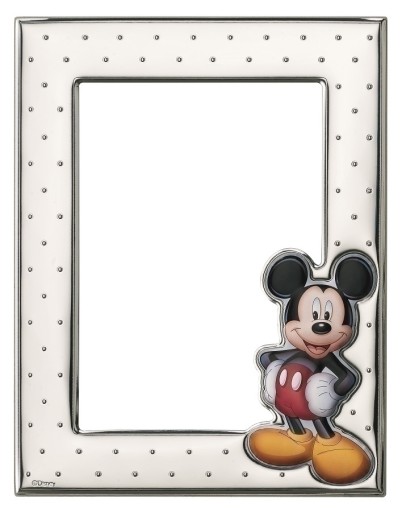 Srebrna ramka dziecięca z Myszką Mickey to doskonały prezent na Chrzest, urodziny dziecka, roczek, itp. Obdarowane dziecko swobodnie umieści w niej zdjęcie w formacie 9 x 13 cm. Wysoka jakość wykonania, gustowne wykończenie, eleganckie opakowanie - to wszystko tworzy unikalną pamiątkę na długie lata... Ramka jest także niezwykle praktyczna: posiada rozkładaną podpórkę, dzięki czemu możemy ustawić ją na szafce lub komodzie.