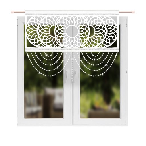 PANEL AŻUROWY DEKORACYJNY 100x80 BIAŁY FILC FIRANA ZDOBIONY KORALIKAMI