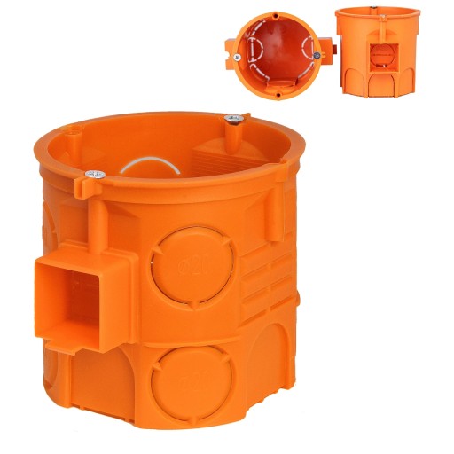 - Przeznaczenie: Nowa wersja puszki, wprowadzona w IV 2018. Posiada 4 otwory montażowe do precyzyjnego mocowania łączników i gniazd instalacyjnych. Dodatkowo też konstrukcja poszerzona jest o więcej osłabień do w prowadzenia przewodów z boku.