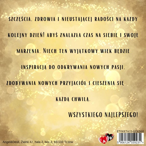 Oryginalna kartka na 60 urodziny została starannie zaprojektowana i wydrukowana na wysokiej jakości papierze 350g. Idealny dodatek do prezentu!