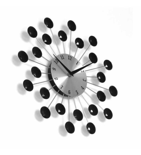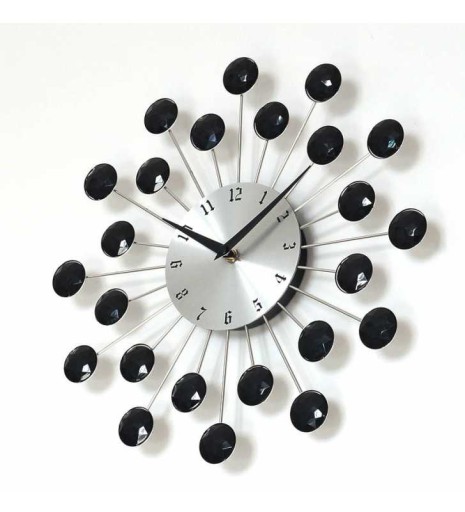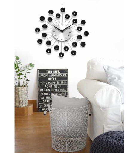 Zegar ma pręciki w kolorze srebrnym, kryształki akrylowe czarne