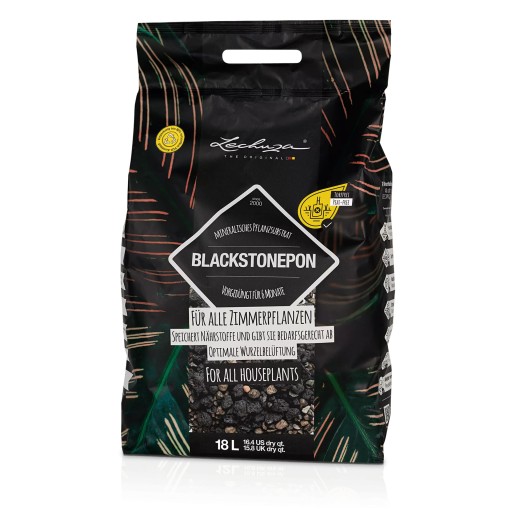 Dekoracyjna elegancja połączona z wyjątkową funkcjonalnością: BLACKSTONEPON rzuca cień na tradycyjną ziemię doniczkową. Organiczno-mineralne podłoże roślinne z naturalnym węglem drzewnym i czarną lawą charakteryzuje się wyjątkową ciemną barwą. Jest idealną alternatywą dla konwencjonalnej gleby doniczkowej, ponieważ jest stabilna strukturalnie, wspomaga napowietrzanie korzeni i optymalnie dozowane zaopatrzenie w wodę. Tym samym w niczym nie ustępuje konwencjonalnym substratom roślinnym firmy LECHUZA: pumeks, lawa i zeolit zapewniają wysoką zdolność drenażu i magazynowania wody, dzięki czemu mogą niezawodnie dostarczać roślinom wystarczającą ilość wody. Zawarty węgiel drzewny stymuluje wzrost korzeni. Ponieważ BLACKSTONEPON jest wstępnie nawożony, rośliny otrzymują składniki odżywcze przez 6-8 miesięcy. Z miłości do natury podłoże nie zawiera torfu. Można go stosować pod wszystkie rośliny domowe zarówno do nasadzeń całkowitych, jak i jako warstwę dekoracyjną.