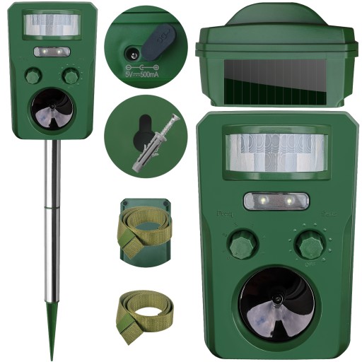 Odstraszacz zwierząt, psów, kotów, ptaków, lisów, dzików, kun, myszy, zająców, wiewiórek i innych 7w1