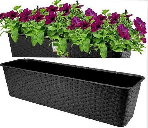 БАЛКОННЫЙ ЯЩИК, ЦВЕТОЧНЫЙ ГОРШОК, узор из ротанга, 60см АНТРАЦИТОВЫЙ