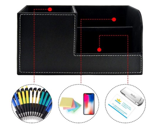 Кожаный настольный органайзер, подставка для ручек, телефон, пульт дистанционного управления.