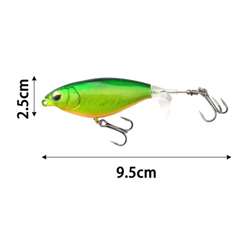[Ogon śmigła] Przynęty wędkarskie zostały zaprojektowane z miękkim gumowym ogonem śmigła, który obraca się i rozpryskuje na powierzchni wody, tworząc dźwięk „plop”, który przyciąga pod wodą.