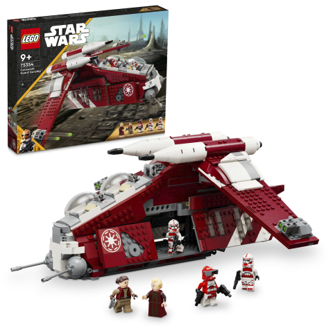 Dzięki Kanonierce Gwardii Coruscańskiej (75354) fani mogą przejąć dowodzenie nad własnymi misjami znanymi z serialu „Gwiezdne Wojny: Wojny klonów”. Ma ona dwa kokpity dla pilotów, dwa miotacze klocków, dwie ruchome armaty i uchwyt ułatwiający latanie. Tylna klapa i przesuwany panel boczny zapewniają łatwy dostęp do kabiny, w której jest miejsce dla żołnierzy. Ten doskonały pomysł na prezent z serii Star Wars™ dla dzieci w wieku od dziewięciu lat zawiera również pięć minifigurek LEGO, w tym komandora Foxa, kanclerza Palpatine'a i Padmé Amidalę, a także trzy pistolety blasterowe i dwa blastery do odgrywania akcji. Cyfrowe instrukcje Pobierz aplikację LEGO Builder, która zawiera cyfrowe instrukcje budowania krok po kroku i intuicyjne narzędzia do przybliżania i obracania, pomagające w wizualizacji modelu. Fajne zabawki do budowania Grupa LEGO już od 1999 roku tworzy modele statków kosmicznych, pojazdów, miejsc i postaci z uniwersum Gwiezdnych Wojen. Szeroka oferta zestawów zachwyci fanów w każdym wieku.