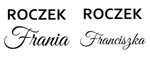 Przykład nr 5 - ROCZEK Mii - imię 3 literowe, więc jego szerokość jest zmniejszona do 40,0 cm