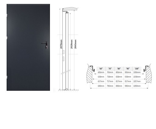- Grubość: 40mm, skrzydło pokryte blachą o grubości 0,5mm