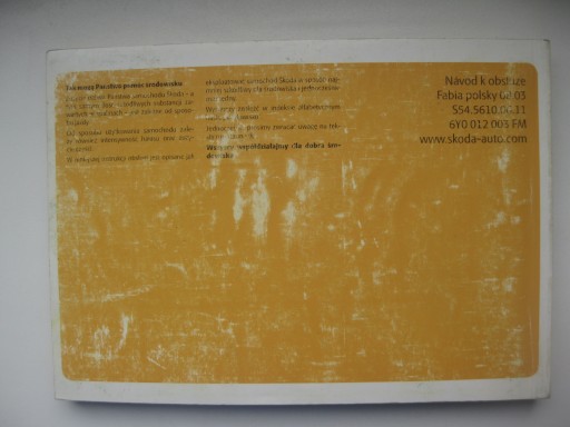 Uwaga: To jest oryginalna instrukcja obsługi wydana przez Skoda Auto