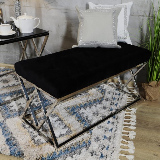 Ławka ze stali nierdzewnej z siedziskiem welurowym w kolorze czarnym Wymiary po złożeniu (szer x gł x wys): 80x47x48cm