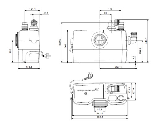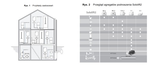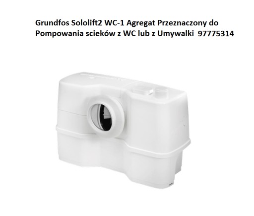 OPIS PRODUKTU: Rozdrabniacz Sololift2 WC-1Dane techniczne: napięcie zasilania: 1 x 220-240 V - 10 %/+ 6 %, 50 Hz pobór mocy P1 maks: 620 W prąd znamionowy: 3,0 A stopień ochrony: IP44 objętość zbiornika: 9,0 litrów przyłącze do muszli WC: do przyłączenia muszli WC z przyłączem tłocznym poziomym wg EN 33 lub EN 37. Muszla musi być spłukiwana (jednorazowo) objętością co najmniej 4 l. przyłącze dopływowe: 1 x 32/36/40 możliwe średnice rur: 2 x 36/40/50 maksymalna temperatura cieczy: 50 °CSololift2 WC-1 jest małym, kompaktowym, gotowym do montażu w systemie automatycznym agregatem podnoszącym ze zintegrowanym rozdrabniaczem. Nadaje się on do pompowania ścieków zawierających fekalia z różnych miejsc w domach prywatnych.