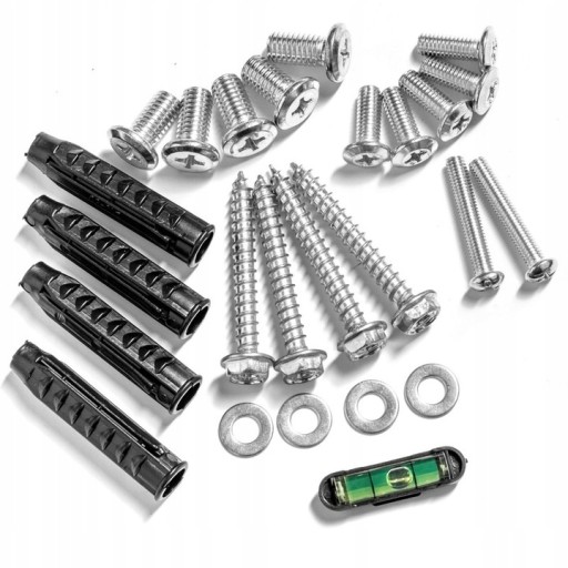W zestawie z uchwytem otrzymujesz uniwersalne akcesoria montażowe które powinny być odpowiednie do większości montowanych telewizorów. Jeśli w uniwersalnym zestawie będzie brakowało odpowiednich śrub do Twojego telewizora, należy je dokupić we własnym zakresie w pobliskim sklepie z narzędziami.