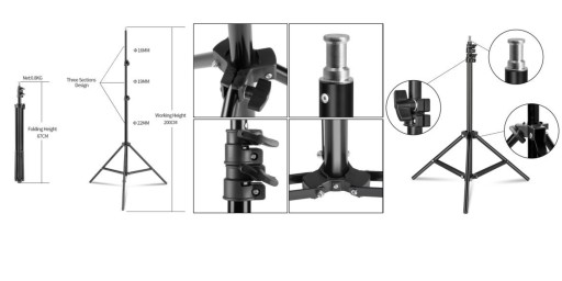Lekki statyw 2x Support: lekki statyw, regulowana wysokość min, 79cm, max. 200cm, stabilny i trwały.