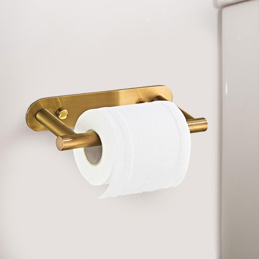 Uchwyt na papier toaletowy ze stali nierdzewnej do przechowywania w łazience hotelowej. Szczotkowane złoto