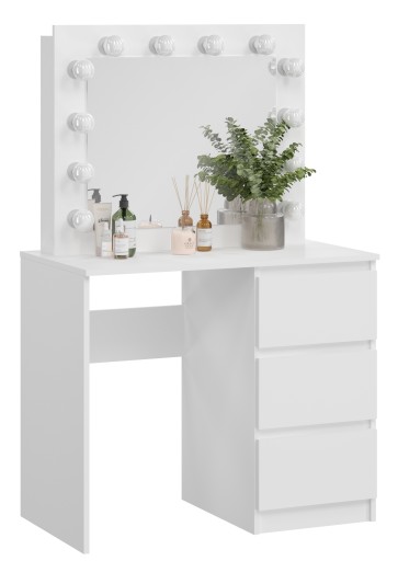 Po prawej stronie toaletki znajdują się 3 pojemne szuflady na kosmetyki i nie tylko.