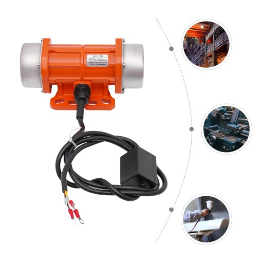 - Jest to silnik wibracyjny wykonany z aluminiowej obudowy, bocznej pokrywy ze stali nierdzewnej i czystej cewki miedzianej. Ma ocenę ochrony IP65, dzięki czemu można go używać przez długi czas z pewnością. Możesz dostosować kąt ekscentrycznego bloku, aby zmienić wibrację, aby zaspokoić potrzeby różnych miejsc pracy.