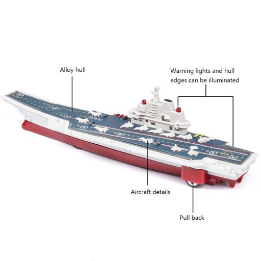 Zabawka lotniskowiec dla dzieci Pojazd Odlew metalowy Pancernik Odciągnij i zwolnij Model okrętu wojennego ze światłami i dźwiękami