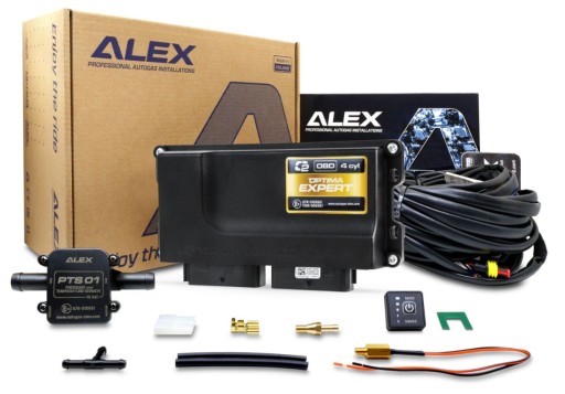 ALEX OPTIMA EXPERT to obecnie najbardziej zaawansowany, profesjonalny sterownik z wbudowanym modułem obsługi OBD i emulatorem czujnika ciśnienia paliwa. Emulator jest w pełni programowalny z poziomu aplikacji do kalibracji instalacji Optima.