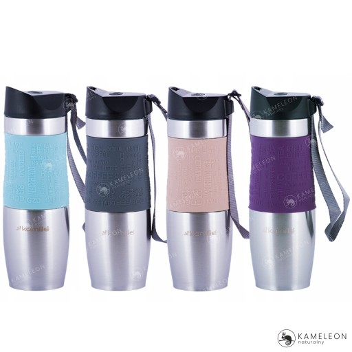 Kubek termiczny KAMILLE jest niezbędny w samochodzie, idealnie nadaje się do pracy lub szkoły, zarówno w chłodniejsze tak i cieplejsze dni.