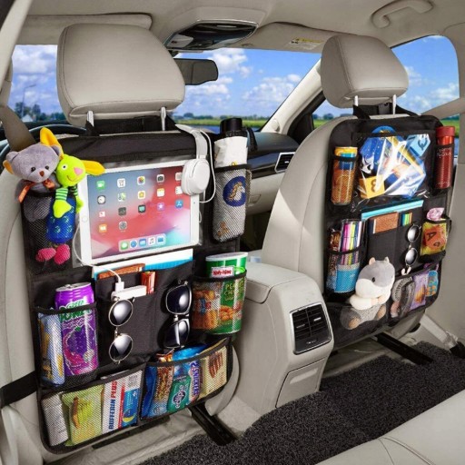 ✅【Wysoka pojemność】Organizer na tylne siedzenie samochodu o powiększonych wymiarach 62 * 42 cm; Powierzchnia przezroczystego okna sięga 27 * 20 cm, co ułatwia umieszczenie w nim iPada lub tabletu. W ten sposób osoby siedzące na tylnym siedzeniu mogą cieszyć się szczęśliwym czasem podczas jazdy dzięki tabletowi; ochraniacz oparcia ma 10 schowków, które zapewniają więcej miejsca do przechowywania napojów, zabawek dla dzieci, książek i czasopism, aby podróż była łatwiejsza i przyjemniejsza