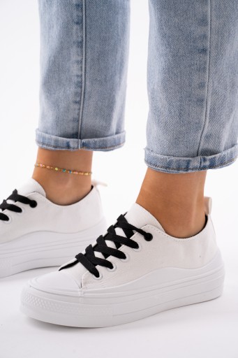 Czarno białe trampki tenisówki damskie na grubej podeszwie