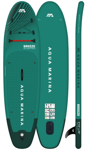 Aqua Marina to światowy lider w produkcji sprzętu do pływania na stojąco. Popularność tej marki wynika ze znakomitego stosunku jakości do ceny. W ofercie na ten sezon znajduje się również model Breeze, który został odświeżony względem wcześniejszych lat. To idealny wybór dla osób, których waga nie przekracza 90 kg a z deski zamierzają korzystać głównie w pojedynkę. Całkowity udźwig deski wynosi 100 kg więc osoby lżejsze będą mogły zabrać na pokład dziecko, zwierzaka lub dodatkowy bagaż. Paddleboard należy do kategorii allround co oznacza szeroką możliwość wykorzystania deski. Można na niej pływać zarówno na wodach spokojnych jak i na akwenach z małymi falami. Sprawdzi się zarówno jeżeli jesteś początkującym SUPowiczem jak i w przypadku bardziej doświadczonych pływaków. Z uwagi na niewielką wagę i rozmiary deski, jest to bardzo chętnie wybierana propozycja wśród kobiet.