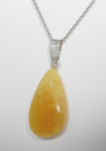 Zawieszka zdobiona naturalnym bursztynem bałtyckim z łańcuszkiem (ankier). Komplet wykonany ze srebra próby 925.