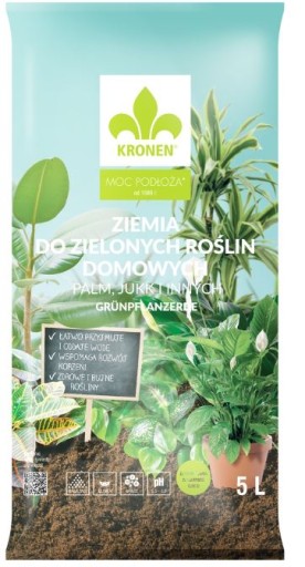 KRONEN Ziemia do palm, jukk i dracen to doskonałe podłoże do sadzenia i przesadzania roślin zielonych o ozdobnych liściach uprawianych w pojemnikach. Rośliny posadzone w tym podłożu rosną zdrowo i bujnie.