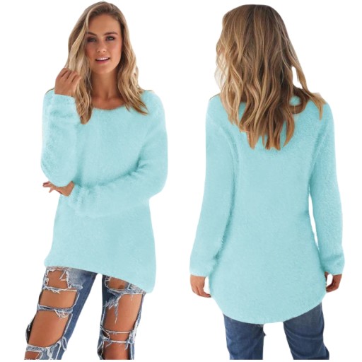 MODNY SWETER DAMSKI BAWEŁNIANY DŁUGI OCIEPLANY JESIENNO ZIMOWY LUŹNY Marka bez marki