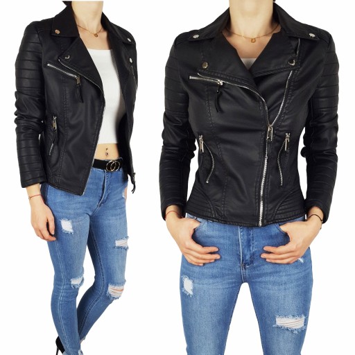 Klasyczna kurtka RAMONESKA. Model taliowany, sięgający do pasa. Uszyta z miękkiej ekoskóry doskonale imitującego naturalną skórę, półmatowa (nie świecąca i nie blado matowa). Materiał miękki (nie jest sztywny i nie piankowy). Zapinana jest na srebrny zamek . Po bokach dwie kieszonki zapinane na suwaki. Kurtka podszyta jest czarną podszewką. Można ją wykorzystać w każdej stylizacji, zarówno do klasycznych jeansów i białego T-shirtu na codzienne wyjścia, jak i do kobiecych sukienek dodając im rockowego charakteru. Jest to zdecydowany must have w każdej garderobie!
