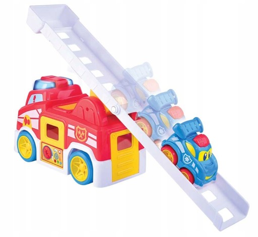 Wóz ma rozkładaną drabinę oraz migające światełka, co na pewno przyciągnie uwagę małych bohaterów.
