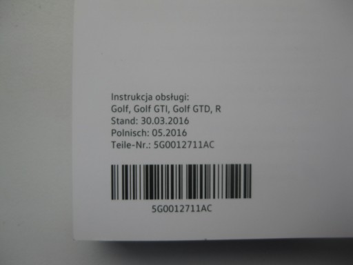 VW Golf VII 2013-2016 польская инструкция, красочная, оригинал VW OEM