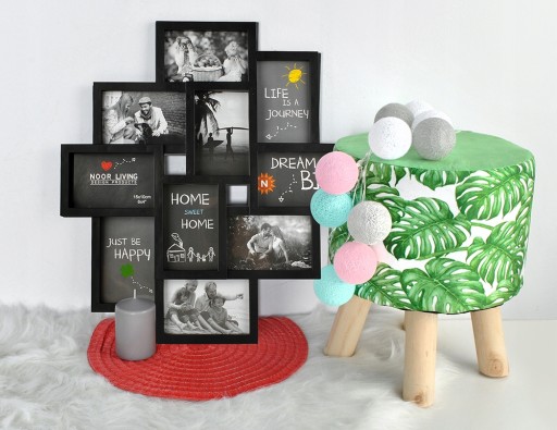 Ramka będzie świetnie wyglądać w każdym pomieszczeniu, zarówno w sypialni, przedpokoju, kuchni czy pokoju dziecięcym. Multiramkę można w prosty sposób zawiesić na ścianie lub z powodzeniem postawić na meblach (w tym wypadku musi być oparta o ścianę). Foto ramka jest estetyczna i pasuje do wszystkich kolorów ścian, jak również nie koliduje ze znajdującymi się w jej najbliższym otoczeniu wzorami. Ramka na zdjęcia doskonale sprawdzi się jako prezent na każdą okazję.