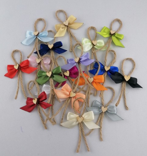 - Kokardka wykonana jest ze wstążki 12mm, serduszko posiada wymiary 10mmx10mm