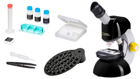 W zestawie znajduje się także mikroskop, który powiększa obserwowane preparaty do 640x.